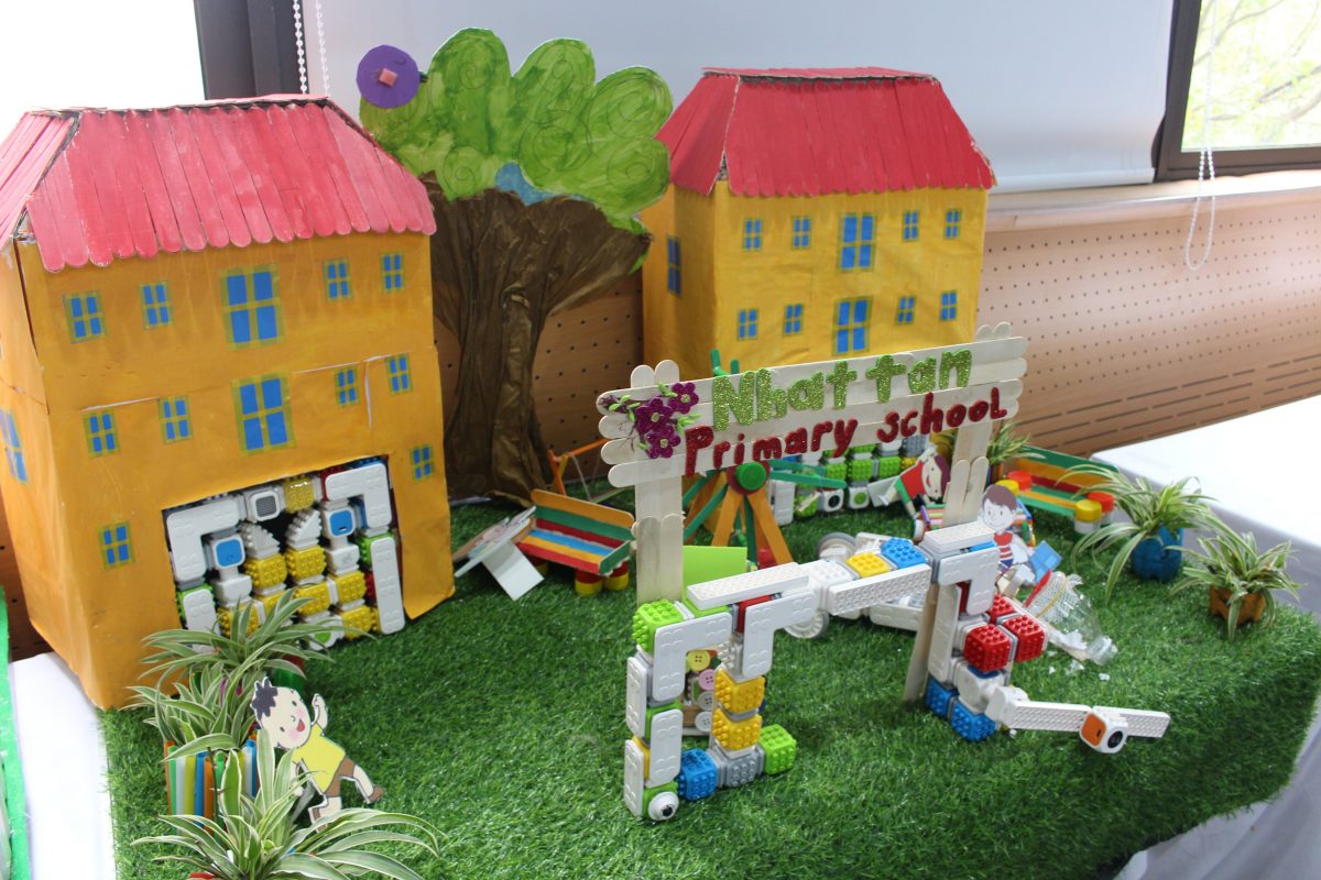 Học sinh thuyết trình về những mô hình sáng tạo STEM với chủ đề “Vì một hành tinh xanh”.