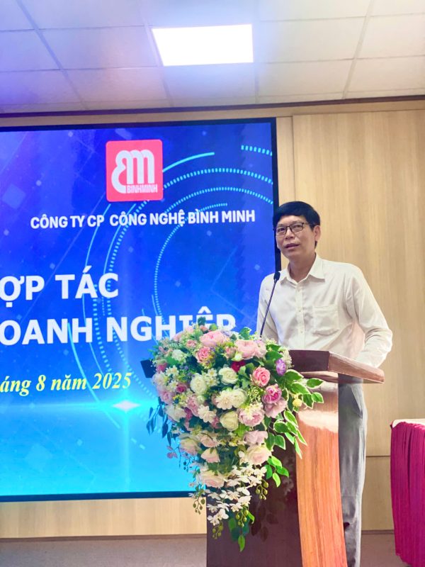 Mở đầu buổi lễ, thầy Phạm Quang Vinh – đại diện Trường CKI nhấn mạnh việc đưa sinh viên thực tập tại doanh nghiệp là cầu nối then chốt giữa lý thuyết và thực tiễn, giúp kiến thức trên lớp được phát huy hiệu quả. Thầy kỳ vọng sự đồng hành của Công ty Cổ phần Công nghệ Bình Minh và AI Box Innovation sẽ tạo môi trường rèn luyện chuyên nghiệp, tiếp thêm động lực để sinh viên sẵn sàng đáp ứng yêu cầu thời đại mới.