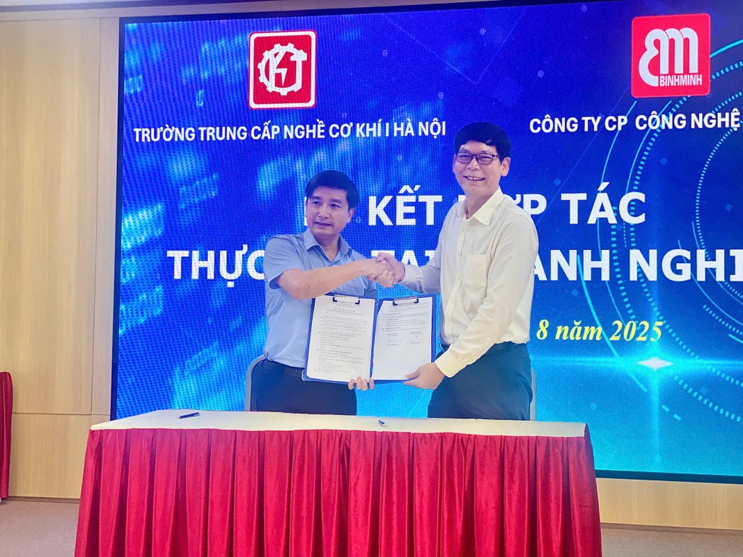 Ngày 22/8/2025, tại trường Trung cấp nghề Cơ khí I Hà Nội (CK1) đã diễn ra thành công Lễ ký kết hợp tác thực tập tại doanh nghiệp giữa nhà trường và Công ty Cổ phần Công nghệ Bình Minh (BMG)